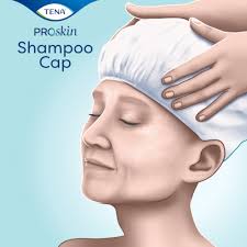 TENA ProSkin Shampoo Cap to czepek wstępnie nawilżony szamponem i odżywką o świeżym zapachu, umożliwiający wygodne mycie włosów w przypadkach, kiedy regularne branie prysznica lub kąpieli jest utrudnione. Czepek jest łatwy w użyciu. Wystarczy założyć go na suche włosy i wmasowywać we włosy szampon z odżywką przez trzy minuty. Pozostawia włosy czyste i świeże; nie wymaga spłukiwania. Dla zapewnienia dodatkowego komfortu można podgrzać nierozpakowany czepek w opakowaniu w kuchence mikrofalowej.