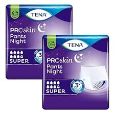 Majtki chłonne TENA Pants ProSkin Night oferują do 100% zabezpieczenia w średnim i ciężkim stopniu nietrzymania moczu w nocy. Zostały wyposażone w system Lie Down Protection zapewniający większą chłonność z tyłu, czyli tam, gdzie jest to najważniejsze w pozycji leżącej. Te zakładane jak zwykła bielizna majtki oferują długotrwałą ochronę, błyskawicznie chłonąc i izolując wilgoć z dala od skóry, dzięki czemu skóra pozostaje dłużej sucha i lepiej chroniona w nocy. Wkład chłonny natychmiast neutralizuje nieprzyjemne zapachy, zapewniając najwyższy stopień poczucia pewności i maksymalną dyskrecję.