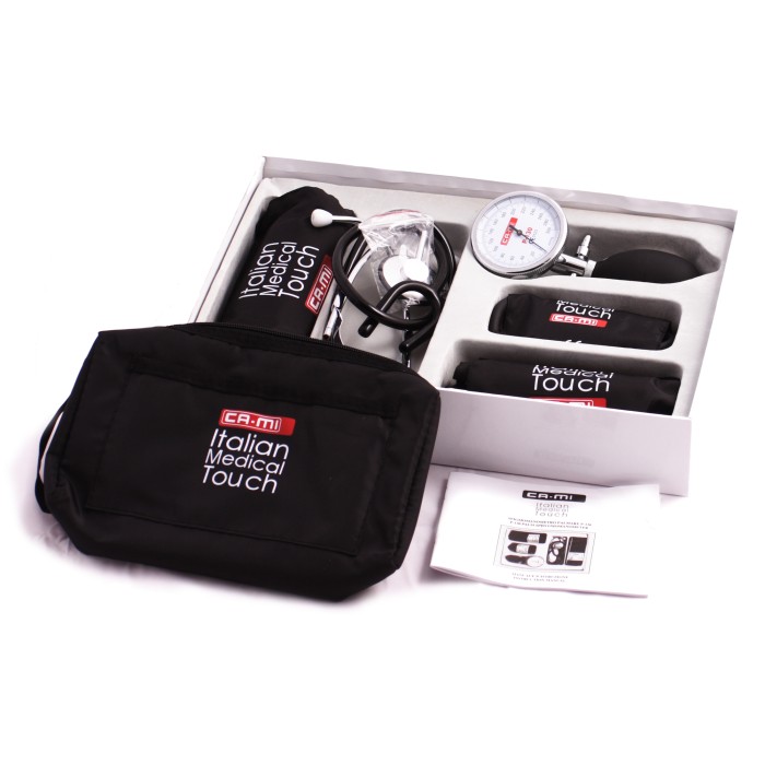 oraz stetoskop umożliwiający odsłuch tętna podczas pomiaru.