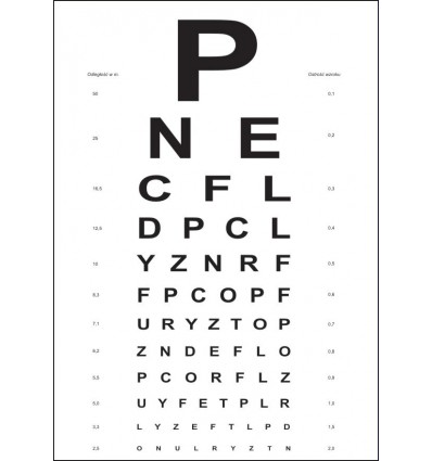 Tablica Snellena optometryczna kartonowa. Z nadrukowanym optotypem literowym lub obrazkowym lub