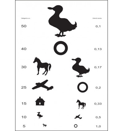 Tablica Snellena optometryczna kartonowa. Z nadrukowanym optotypem literowym lub obrazkowym